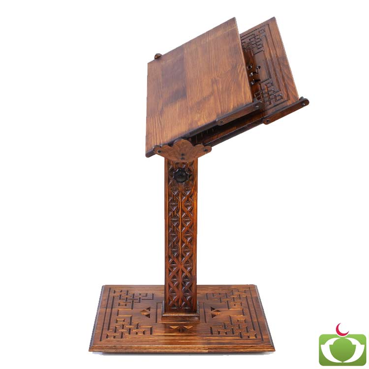 Yükseklik Ayarlı Ahşap Asansörlü Portatif Oymalı Rahle – Motif Oymalı