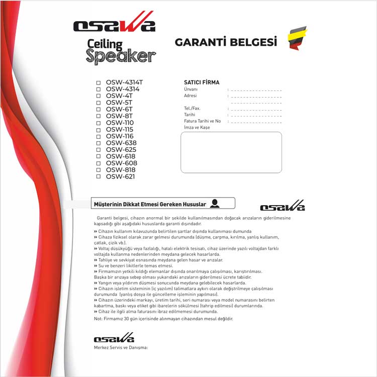 EN GÜZEL SESİ OSAWA HOPARLÖRLERLE ALACAKSINIZ.