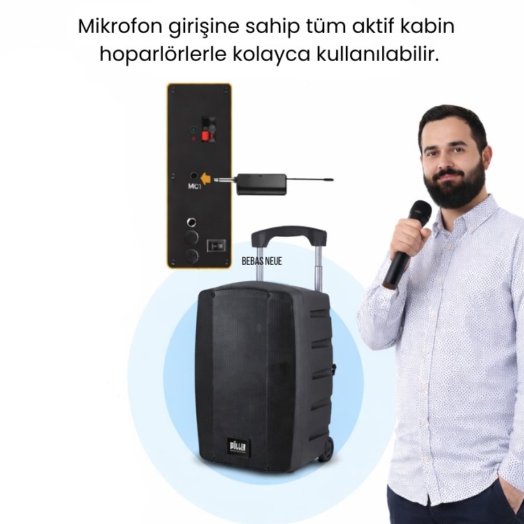 UHF frekansıyla çalışan, kablosuz UHF mikrofonlar kategorisinde yer alan bu mikrofon; 32 frekans değiştirme özelliği, şarjlı ve taşınabilir tasarımıyla öne çıkar ve portatif amfili hoparlörler, mikserler ile ses sistemleriyle uyumlu çalışır.
