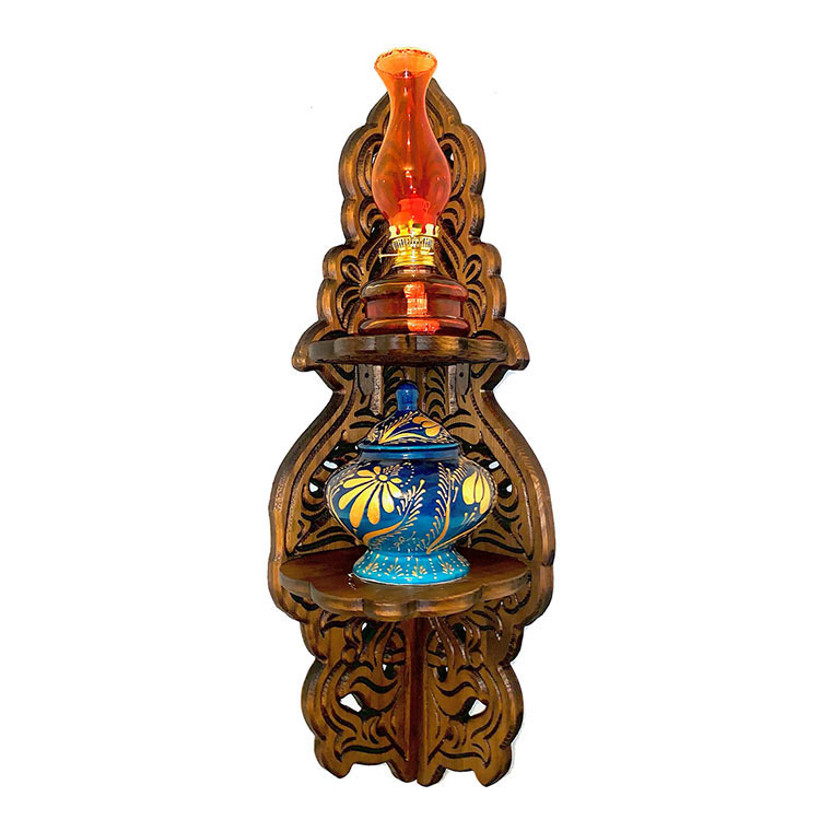 Ürün, kızıl çam ağacından Selçuklu desen oyma tekniği kullanılarak üretilmiştir.