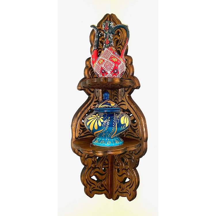 Salonunuzda ve iş yerinizin köşelerinde iki katlı raf seçeneği ile şık ve dekoratif bir görünüm sunar.