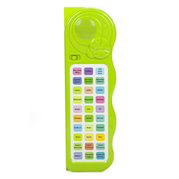 Etiketler: sesli sureler cihazı, kuran öğreten cihaz, sesli kuran, sure öğreten cihaz, yeşil kuran cihazı, islami eğitici oyuncak, çocuklar için kuran, namaz sureleri cihazı, sure ezberleme cihazı, dualı cihaz, kuran dinleme cihazı, islami eğitim ürünü, hafızlık cihazı, çocuk kuran oyuncağı