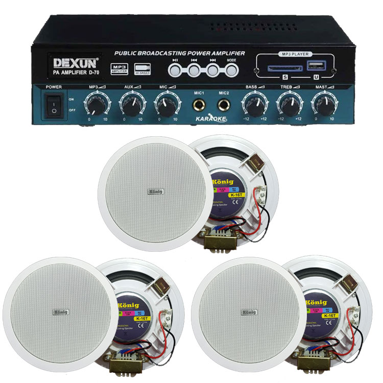 Etiketler: İşyeri ve Büro Ses Sistemi Seti, büro iç ses sistemi, dexun anfi, dexun d70, könig k16thoparlör, büro ses seti, iş yeri ses sistemi, dükkan seti, hoparlör seti, dexun anfi, tavan hoparlör, kaliteli hopa