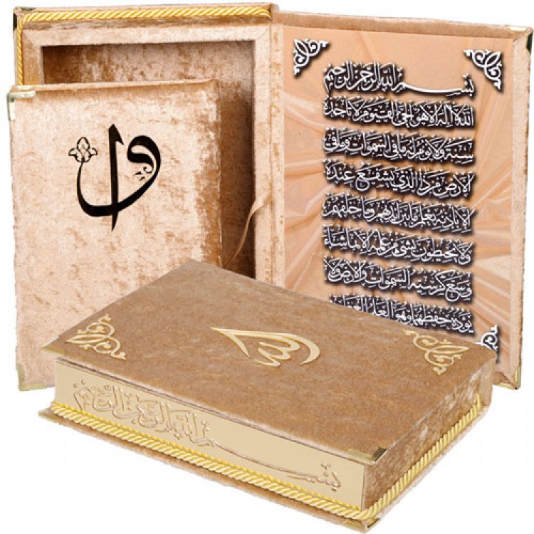 Stokta Yok Kadife Kaplı Kutulu Orta Boy Kuran-ı Kerim - Sarı