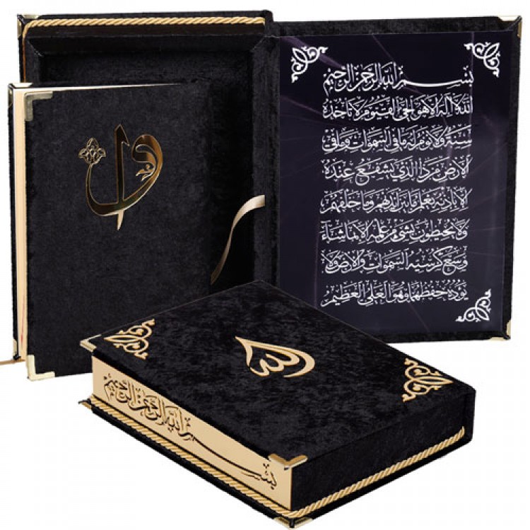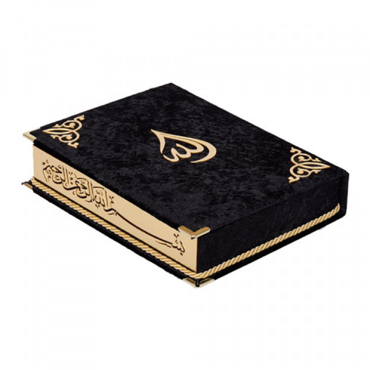 Kadife Kaplı Kutulu Orta Boy Kuran-ı Kerim - Siyah