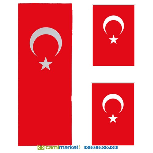 Lüx Stor Minber Perdesi- Türk Bayrağı- 3 Lü TAKIM
