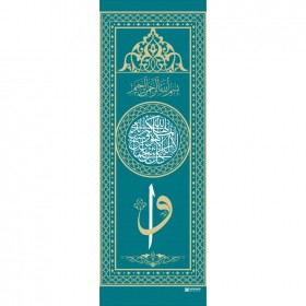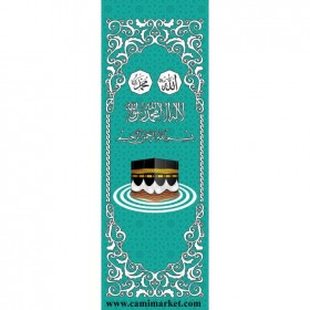 Storlu Minber Perdesi Elif ve Vav Desenli Turkuaz Renk
