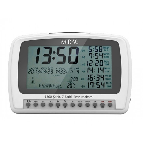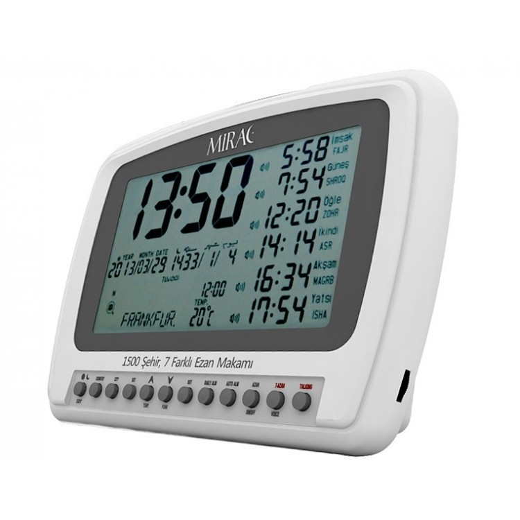Etiketler: Miraç ezan saati, Miraç ezan saati, Ezan okuyan masa saati, Ezan okuyan saatler, Miraç Ezan Saati, Dijijal ezan okuyan masa saati, Miraç saat, Miraç Ezan Saatleri