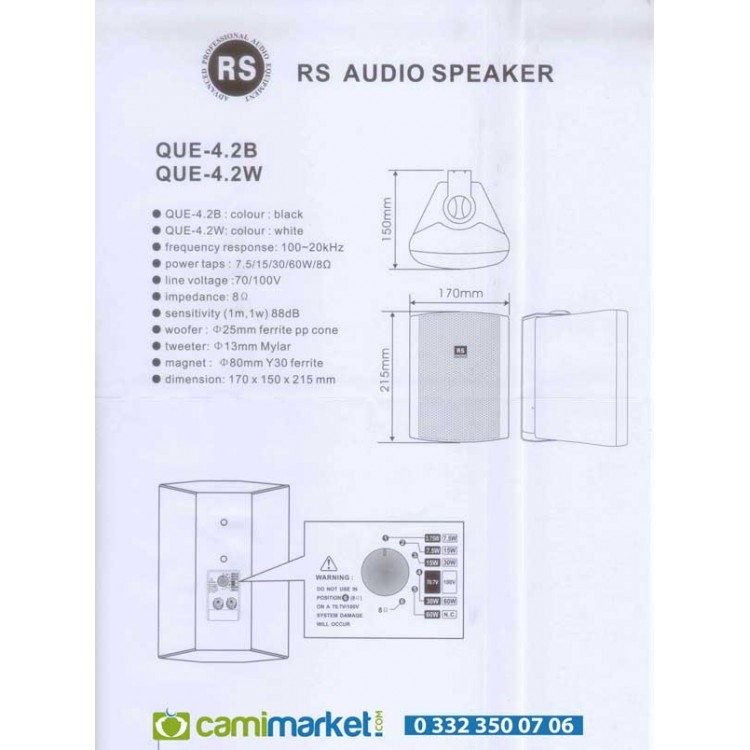 Rsaudio Que - 4.2W Anons Tipi Hoparlör Anons Sistemleri İçerisinde Ön Plana Çıkan Anons Tipi Bir Hoparlördür.