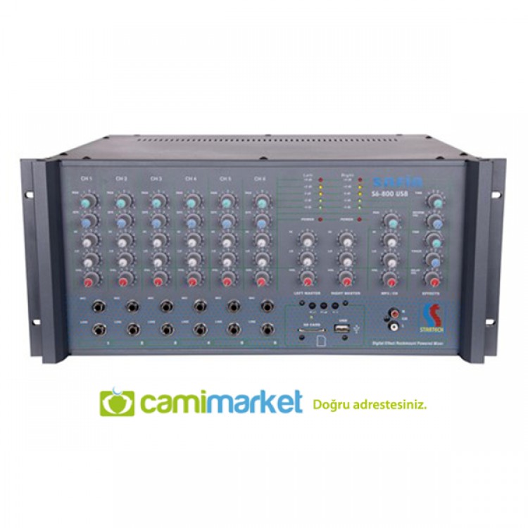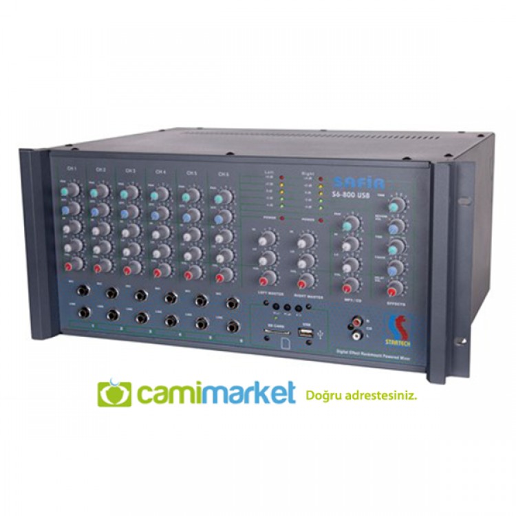 Startech Safir S6 / 800 Watt USB Stereo Güç Mikseri Cami Anfisi Reverbli