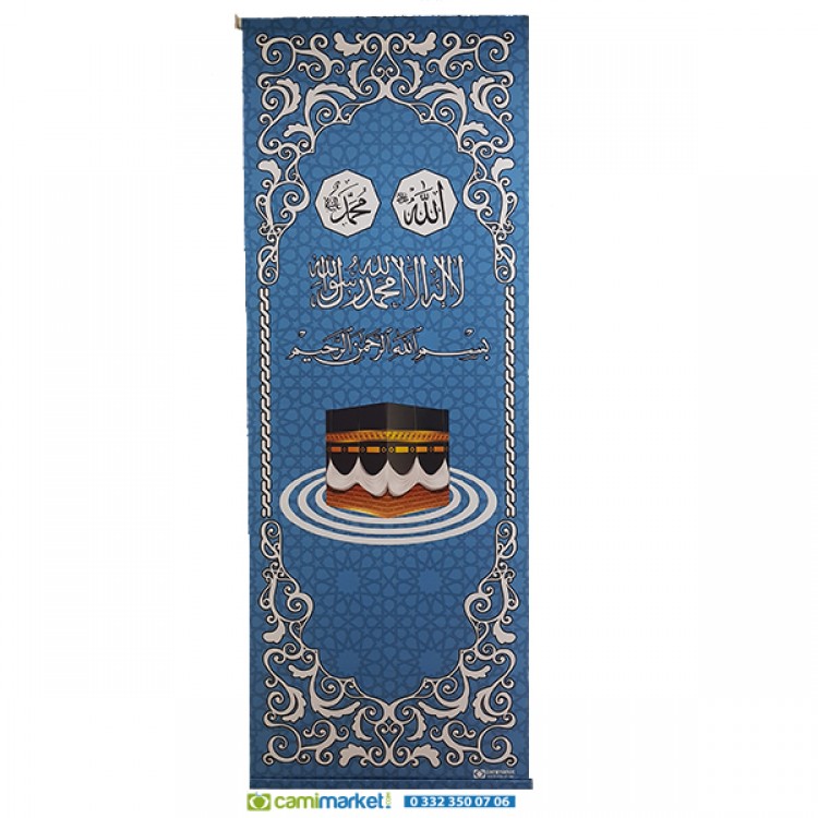 Storlu Minber Perdesi Elif ve Vav Desenli Turkuaz Renk