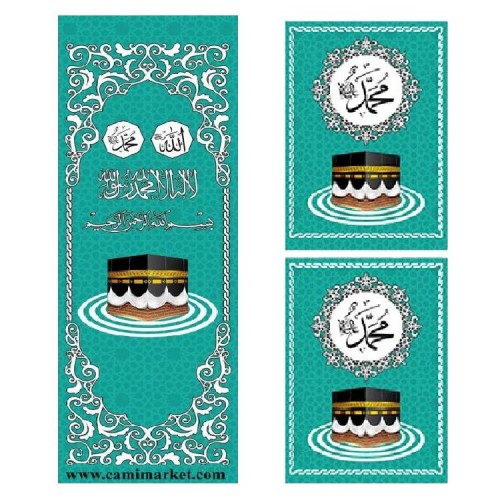 Minber Perdesi 3 Lü Takım- Storlu-Lüx-Turkuaz