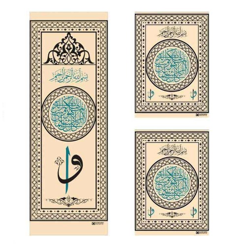 Storlu Minber Perdesi Elif ve Vav Desenli 3 Lü Takım - Bej