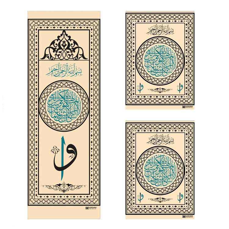 Storlu Minber Perdesi Elif ve Vav Desenli 3 lü Takım Bej Renk