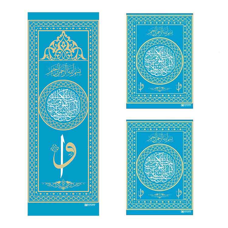 Storlu Minber Perdesi Elif ve Vav Desenli 3 Lü Takım - Mavi Renk