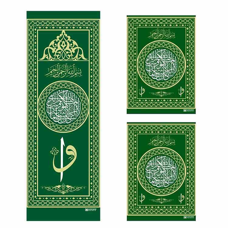 Storlu Minber Perdesi Elif ve Vav Desenli 3 Lü Takım - Yeşil