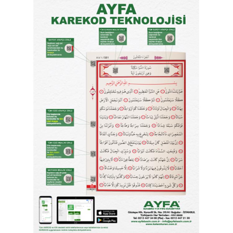 Ayfa Yayın Tecvidli Kur'an-ı Kerim Rahle Boy Renkli AYFA134