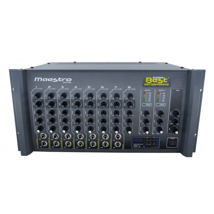 BEST Maestro AN200SU Anfi, 2x200 watt çıkış gücü ile çalışan 2 kanal çıkışlı, 7 mikrofon ve 7 line girişli mono anfi modelidir. En ucuz BEST Maestro AN200SU anfi fiyatı Camimarket.com'da.