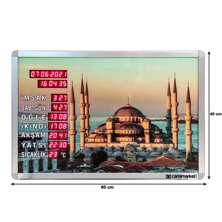 Dijital Cami Saati – Büyük imsakiye – Vakitmatik – Ezan Vakitlerini gösteren saat – Cami saati Ezan vakitlerini gösteren saat - Ezan Okuyan Saat – Ezan Okuyan Saat Dijital Baskılı Ev ve Ofis Tipi