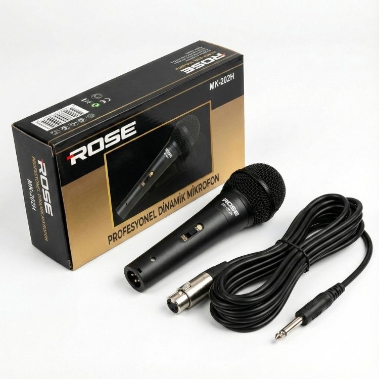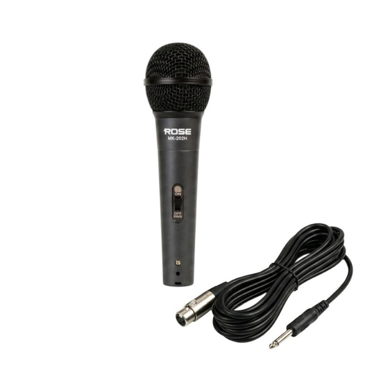 Rose MK-202H, kablolu mikrofonlar arasında yer almakta olan metal gövdeye sahip dayanıklı tasarımda olan kablolu el mikrofonu modelidir.