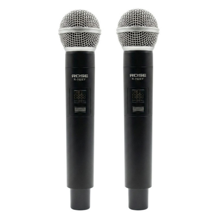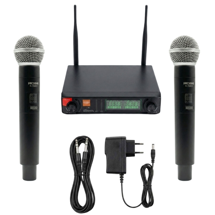 Rose R-702-EE kablosuz mikrofonlar kategorisinde yer alan UHF kablosuz çift el mikrofonudur. UHF kablosuz sistem, düşük gecikme, parazite karşı güvenlik gibi özellikleriyle ön plana çıkmaktadır.