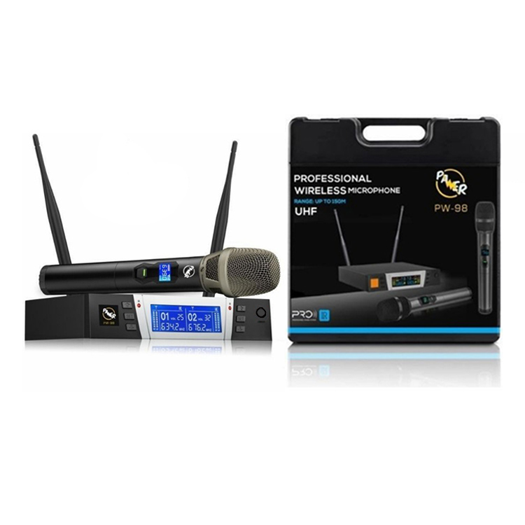 Pawer PW-98-EE Kablosuz UHF 100 metre çekim mesafesine çıkabilen çift kanallı çift el mikrofonlu Pawer kablosuz mikrofon modelidir.