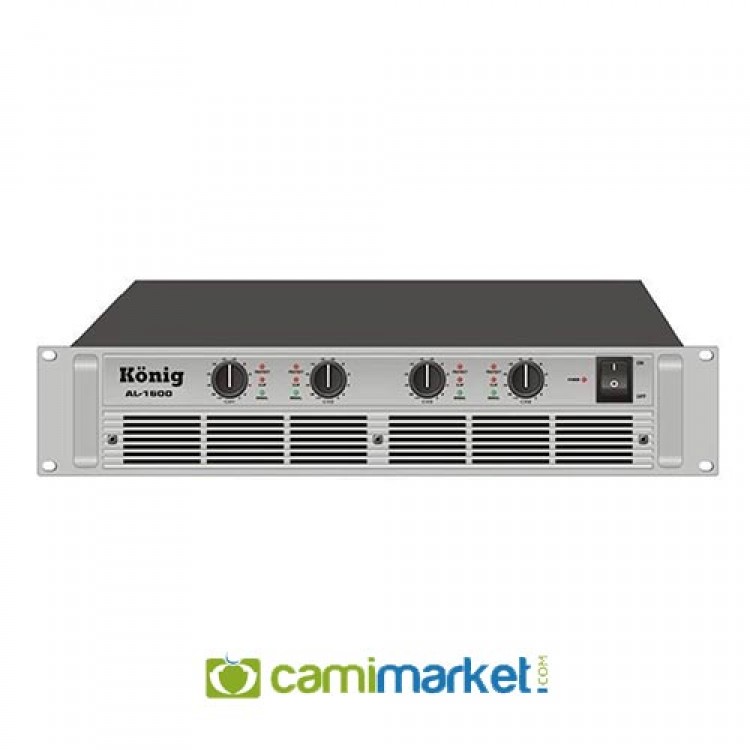 König AL-1600S power anfi, kapalı alan seslendirmelerinde kullanılan 4 çıkışlı, 4x400 watt power anfi modelidir.