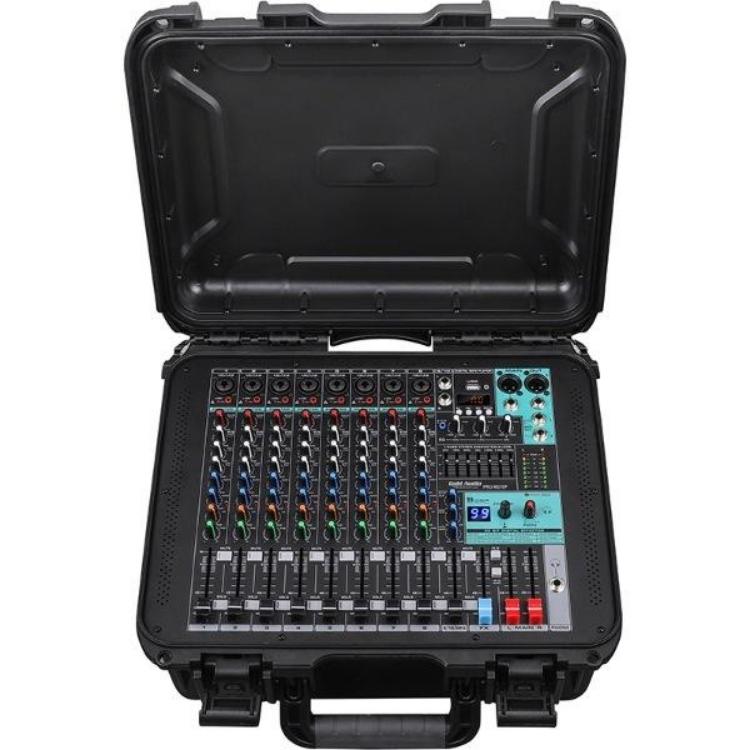 ROSE PRO-M210P profesyonel mikser, sahne performansları, okul ve cami ses sistemleri, konferans salonları, stüdyo kayıtları ve organizasyonlar için çantalı yapıda tasarlanmış çok yönlü bir mikserdir.