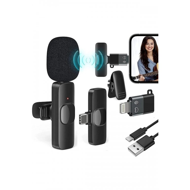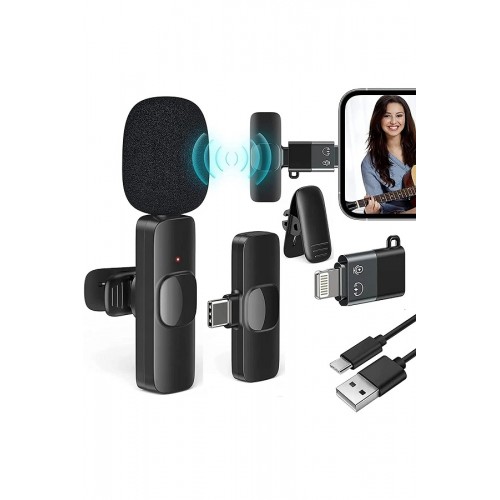 İphone Uyumlu Kablosuz Şarzlı Yaka Mikrofonu-Lightning-K8