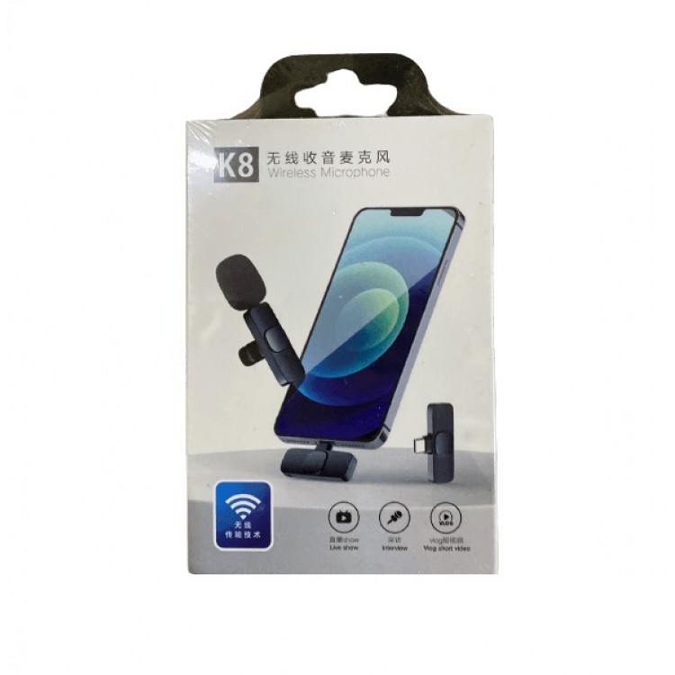 İphone Uyumlu Kablosuz Şarzlı Yaka Mikrofonu-Lightning-K8 Kutu Boyutu: