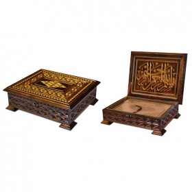 Ahşap Kur'an-ı Kerim Kutusu Koyu Yaldızlı - Cami Boy Kuran Kutusu TS-031-A