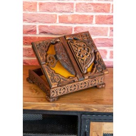 Masaüstü Ahşap Kutulu Rahle-Rahle Boy Ahşap Kur'an-ı Kerim Kutusu Motifli Sarı