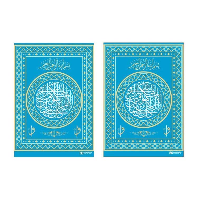 Minber Perdesi Elif Vav Desenli Üst Bölge 2'li Mavi Storsuz