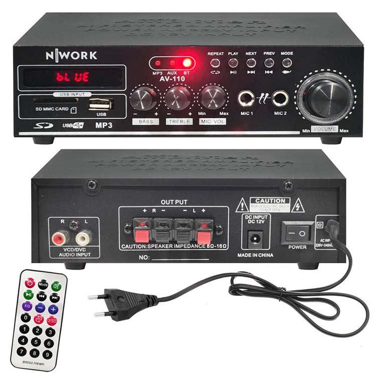 Nwork AV-110 110W Bluetooth USB SD Mp3 Çalar - 12V/220V Anfinin Kutu Ölçüleri: