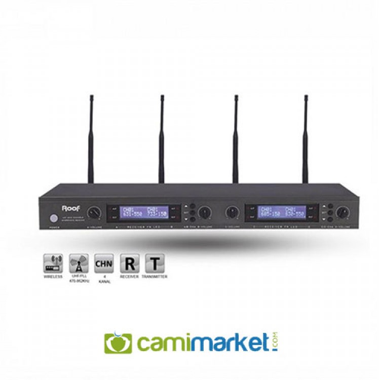 Roof R4000 4 kanal mikrofon alıcısı ve Roof R-6 Telsiz Yaka Mikrofondan oluşan mikrofon setidir.