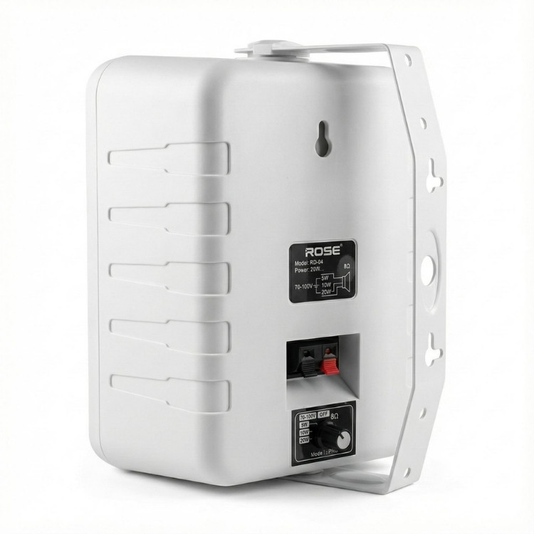Rose RD-04W hoparlör, kaliteli ses çıkışı ve çok yönlü kullanım imkânı sunan 4 inçlik bir hoparlördür. Hem hat trafolu hem de hat trafosuz kullanım seçenekleriyle uyumlu olan bu model, 20 Watt gücünde olup, anons sistemleri, alışveriş merkezleri, okullar, camiler ve diğer kamuya açık alanlar için kullanıma uygundur.