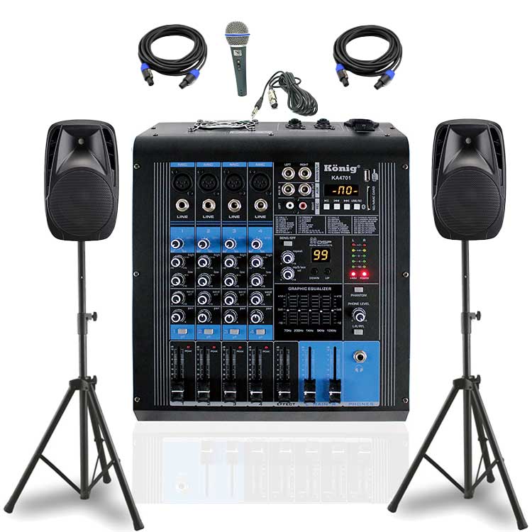 König Profesyonel Ses Sistemi Mixer Hoparlör Ekipman Seti